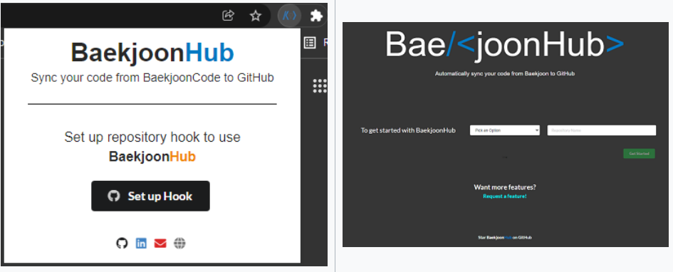 (이건 기존에 자기가 백준허브가 깔려있더라도 별개이다. 방금 프로그램을 실행시켜서 뜬 크롬창에서 백준 허브를 다운받고, 깃허브에 연동해주면 된다. 나는 이미 백준허브를 깔아놔서 이 과정을 건너 뛰었다가 프로그램이 안되서 오류인줄 알았는데 아니었다 ㅜㅜ )