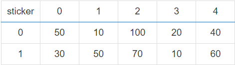 dp[i][j]=max(max_s+sticker[i][j-1],dp[1-i][j-1]+sticker[i][j-1])