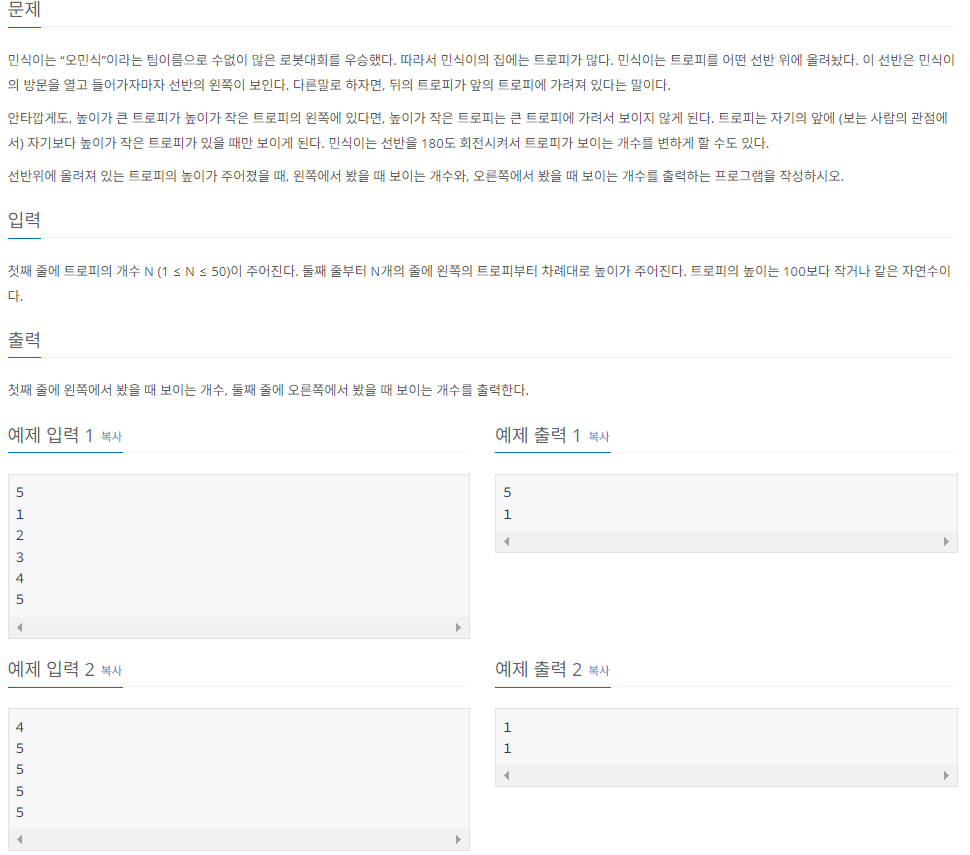 계속해서 현재 책 이전까지의 최대값을 갱신해가며, 최대값보다 작을 경우에만 카운트를 올려주는 방식으로 구현하였다.