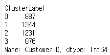 customer_df.groupby('ClusterLabel')['CustomerID'].count()