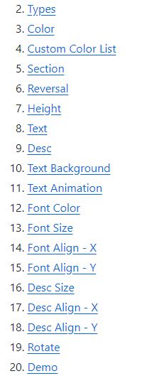 아래 보면 20개 정도의 파라미터들이 있다. `type`, `color`,`height`,`section`,`text` 뭐 등등 있다.