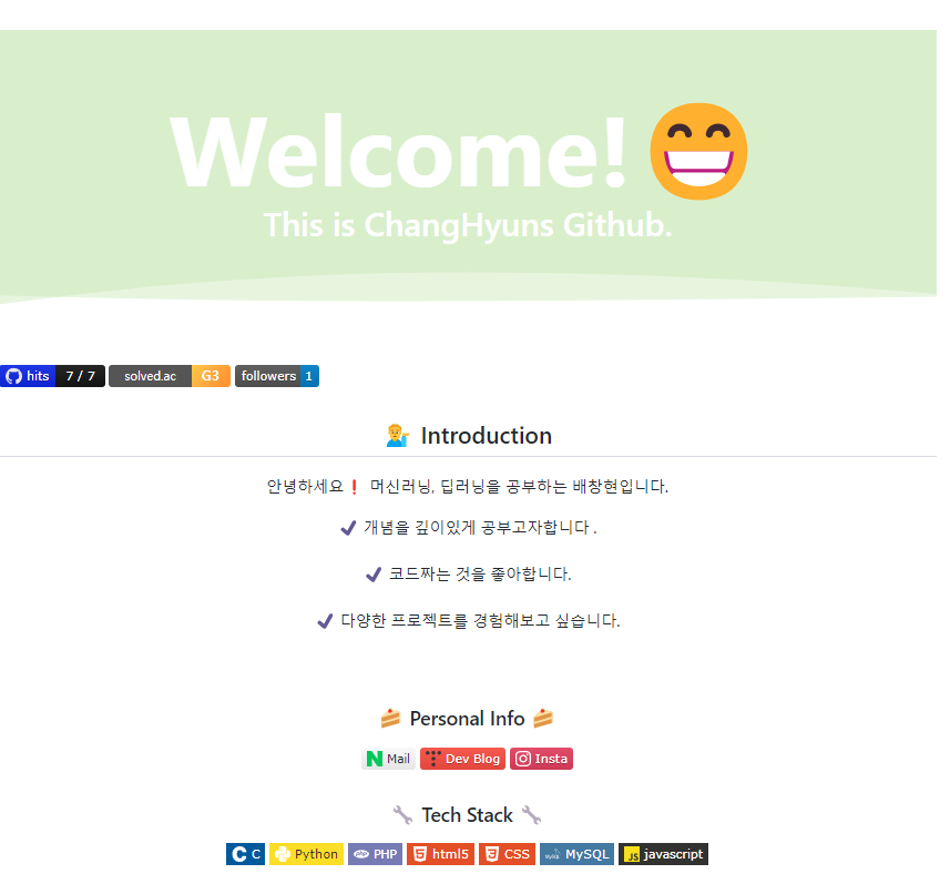 오늘은 자신의 github의 메인화면을 꾸미는 글을 작성해 보겠다.