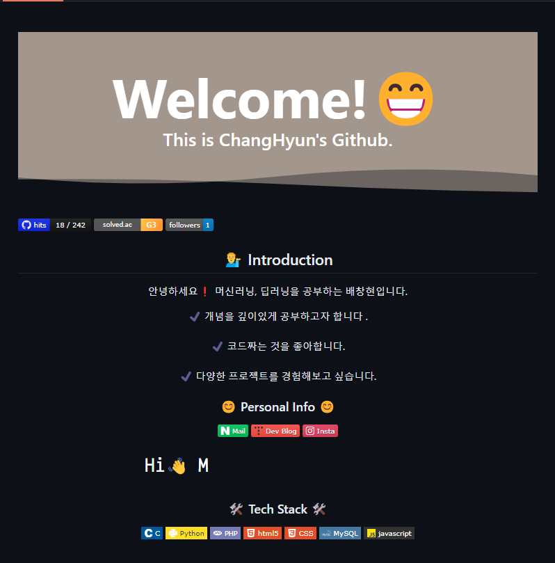 <p>안녕하세요❗ 머신러닝, 딥러닝을 공부하는 배창현입니다.</p>