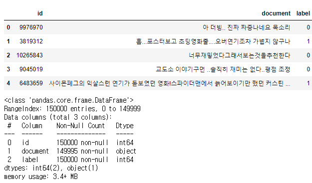 train_df=pd.read_csv('../data/Movie/ratings_train.txt',encoding='utf-8',sep='\t',engine='python')