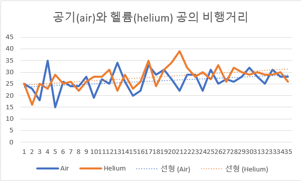 1. 헬륨을 채운공과 공기를 채운공의 운동거리의 차이를 찾아본다.