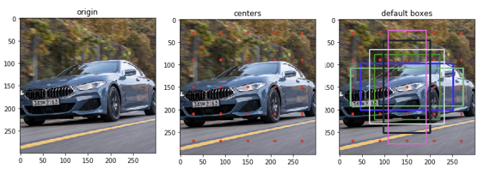 최종적으로, 각 그리드의 중심을 기준으로 각 default box(anchor)을 여러개 그려준다.