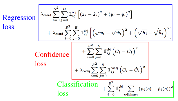 이때 Regressin loss에서 각 셀별로 B개의 BoundingBox에 대한 모든 loss를 계산하는 것이 아닌 ground truth와 가장 유사한 Bbox에 대한 loss만 계산하게 된다.