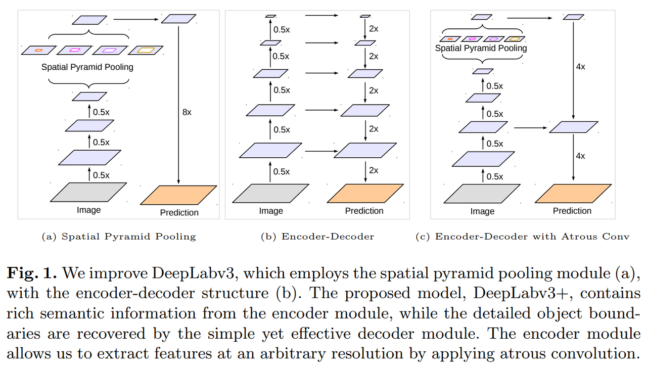 그 중 마지막에 나온 deeplabv3+는 2018년에 구글에서 나와 나온지 오래되었지만, 아직도 높은 성능을 기록하고 있고, 3개의 주요 특징을 갖고있음