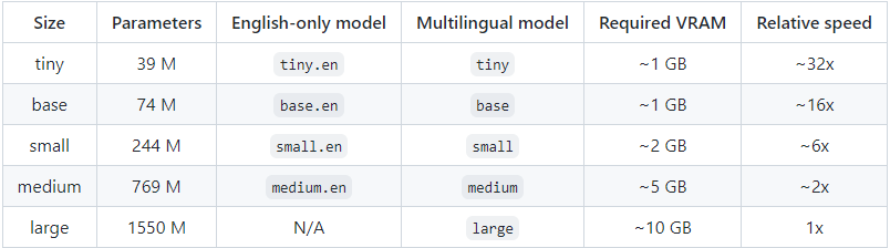 위 코드에서 whisper_type은 내가 임의로 만든 변수고, 여기에는 "tiny", "base", "small", "medium", "large" 중 하나를 넣으면 된다.( 당연히 모델이 커질수록 시간이 좀 더 걸리지만 정확하다. gpu없으면 medium도 힘들지도?..)