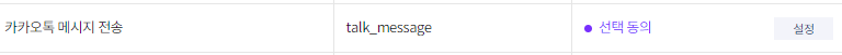2. 좌측 동의항목에서 아래 접근 권한에 카카오톡 메시지 전송에 동의를 해준다.