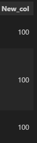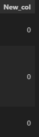 이렇게 column series에 상수값을 할당하면, series의 모든 데이터셋(위에서 new_col이라는 series에 0을 할당)에 일괄적으로 적용이 된다.