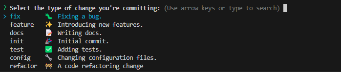 기본 세팅 된 commitizen에는 너무 선택할 것이 많아서, 나는 자주 사용하는 것만 커스텀해서 사용 중인데,