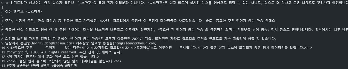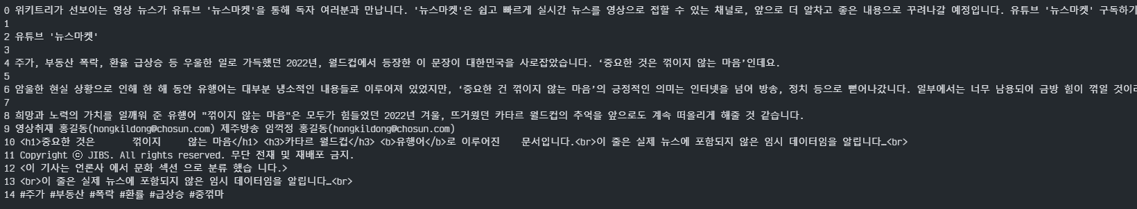 ex. <h1>뉴스 제목</h1> -> 뉴스 제목