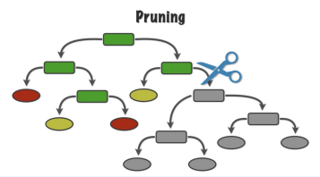 그러나 위와 같이 모든 경우들을 반복하면서 자주 쪼개개되면서 gini 지수가 0이 될 때까지 반복한다면 training data에 과적합이 되기 때문에 pruning(가지치기)를 통해서 이런 것들을 조절해줘야 한다. 이들은 보통 파라미터로 사용할 수 있다.