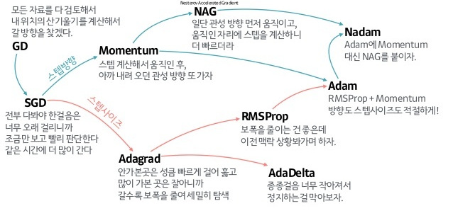 4. 손실함수의 값이 최소가 되도록 모델의 파라미터를 조정하는 최적화 알고리즘 -> Gradient descent, Momentum