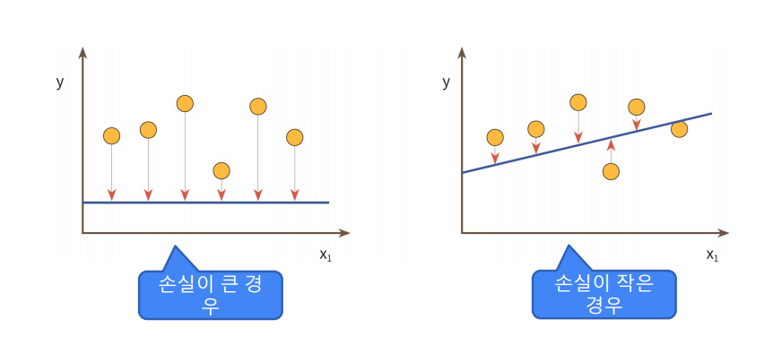 손실함수는 target($ y $)값과 예측값($ \hat{y} $) 사이의 차이, 오차를 수치화 하는 함수이다.