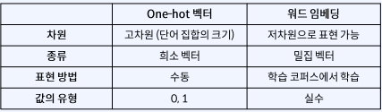원-핫 인코딩을 통해서 나온 원-핫 벡터들은 표현하고자 하는 단어의 인덱스값만 1로, 나머지는 모두 0으로 표현한 벡터이다. 이렇게 벡터 혹은 행렬의 값이 모두 0으로 표현된 것을 희소 표현이라 한다.