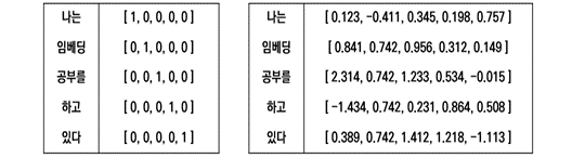 이렇게 단어를 희소벡터로 인코딩하는 방법도 있지만, 기본적으로 단어를 밀집벡터로 표현하는 것을 워드임베딩 이라고 부른다, 워드 임베딩을 통해 나온 밀집벡터를 임베딩 벡터라고 하며, 워드임베딩에는 `LSA`,`Word2 Vec`,`Glove` 등이 있다.