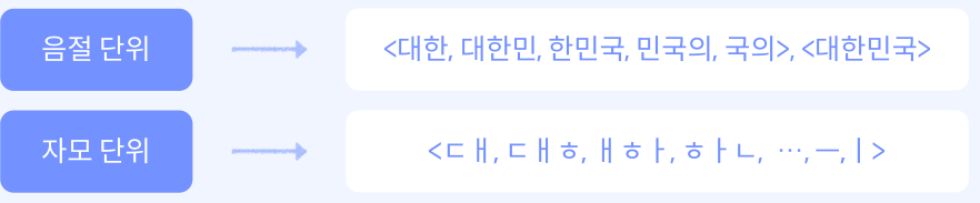 한국어는 글자나 자모음 단위로 나누어 적용할 수 있다,
