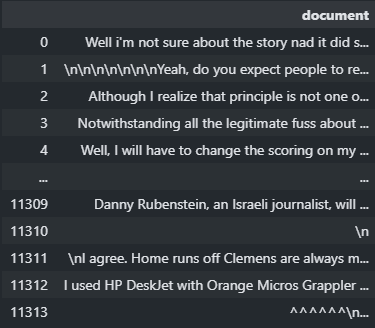 위의 데이터셋에는 총 11314개의 데이터가 포함되어 있다.
