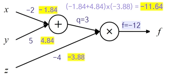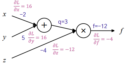 $$ \frac{\partial L}{\partial z} = \frac{\partial L}{\partial f} \cdot\frac{\partial f}{\partial z} = -4 \cdot 3 = -12 $$