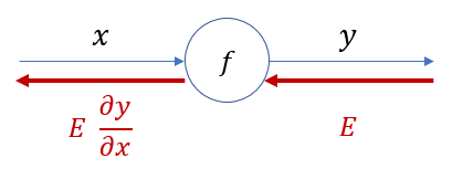 $$ \frac{\partial L}{\partial y} = \frac{\partial L}{\partial f} \cdot\frac{\partial f}{\partial y} $$