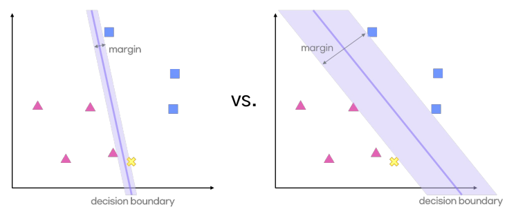$$ \text{Hinge Loss}(y, f(x)) = \max(0, 1 - y \cdot f(x)) $$