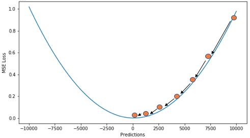 `평균제곱오차`는 `Mean Squared Error: MSE` 라고 부르며, `Quadratic Loss` 혹은 `L2 Loss`고도 부른다.