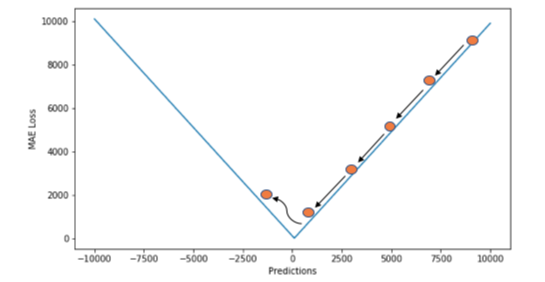 위에서 언급했듯이 MAE는 손실함수의 값이 최소값에 근접했을 때 오히려 점핑이 일어날 수 있기 때문에 이 때는 MSE를 사용하고, 멀 때는 MAE를 사용하여 이상치의 영향을 덜 받고자 하였다.