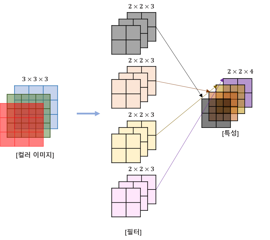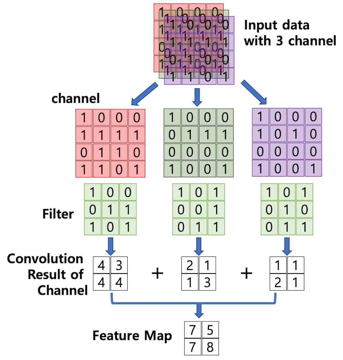 그럼 필터 또한 채널 각각에 적용해야하기 때문에 3개가 필요하다.