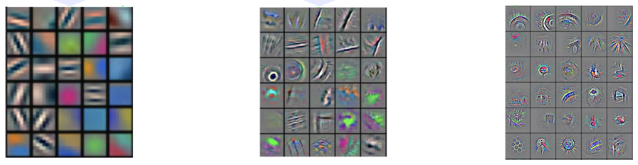 이렇게 뒷 레이어로 갈 수록 receptive field가 커지는 특성 떄문에 convolution layer은 초반 layer에서는 edge와 같은 국소적인 특징들을 주로 학습하게 되고 후반에서는 모양과 같은 넓은 특징들을 포착할 수 있게된다.