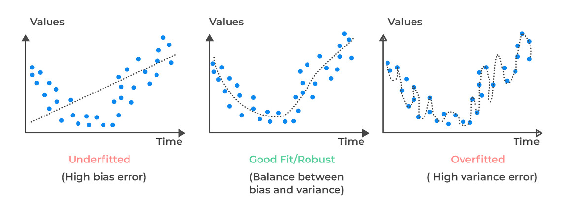 이러한 underfitting과 overfitting이 왜 이뤄지는지를 분산과 편향의 개념에서 설명해 볼 것이다.