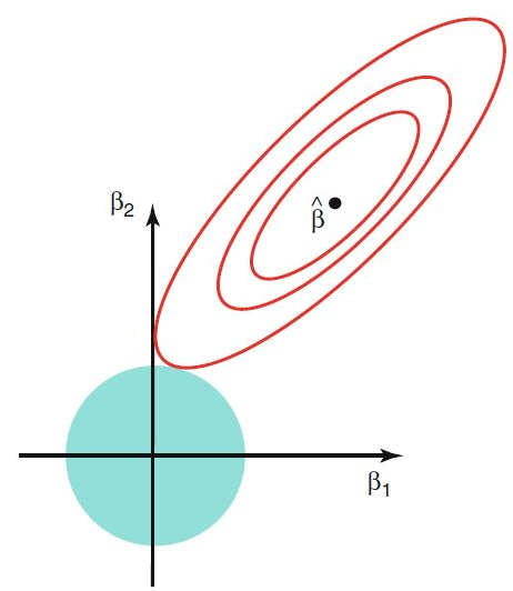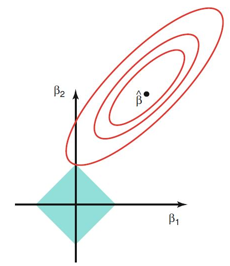 즉 마름모의 꼭지점에 닿는 그 지점은 어떤 특정 $\beta$값들이 0인 지점을 위치한다.
