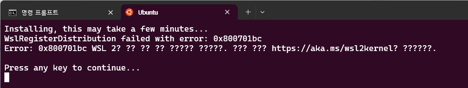 이후 다시 Ubuntu 프롬프트를 닫았다가 열면 오류 메시지가 없이 정상적으로 작동될 것이다.