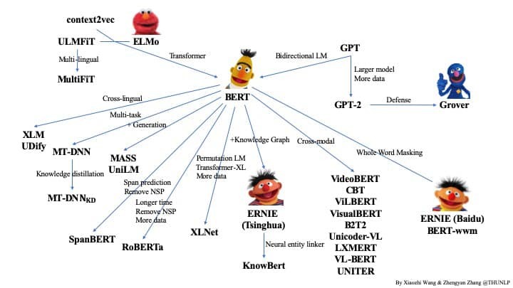 정리하자면 ELMo가 pretraining이라는 관점을 제시하여, GPT-1에서 pre-training을 Transformer에 적용하였고, BERT는 양방향을 통해 개선시켰다.