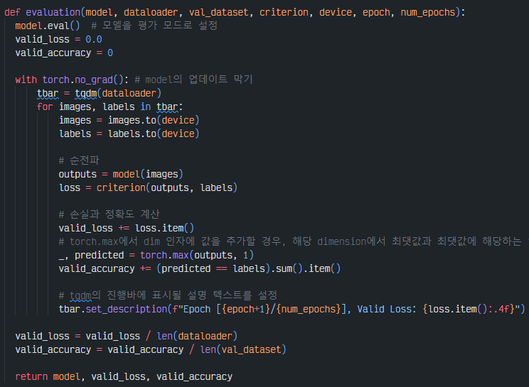위와 마찬가지로 미니 배치를 받아 추론 과정을 거친 후 로그를 기록하는 코드
