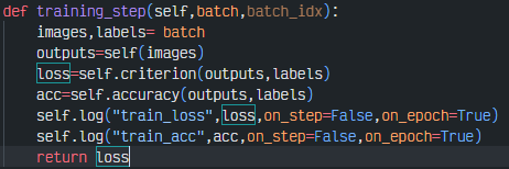 `traing_step`:학습 데이터셋의 미니 배치에 대한 손실을 반환하는 과정을 정의한다. 모델 학습과 관련된 `optimizer.zero_grad()`나 `loss_backward`,`optimizer.step()`등을 작성하지 않아도 된다.