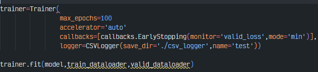 Trainer은 위에서 정의한 LightningModule의 메서드를 이용하여 모델학습을 실행한다. 여기서 콜백함수를 사용하거나 로깅도구를 설정하여 관리할 수도 있다.