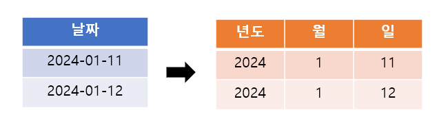 아래와 같이 하나의 변수를 분할하여 두 개의 의미 있는 변수를 생성할 수 있다. 시간과 같은 변수도 변환할 수 있다.