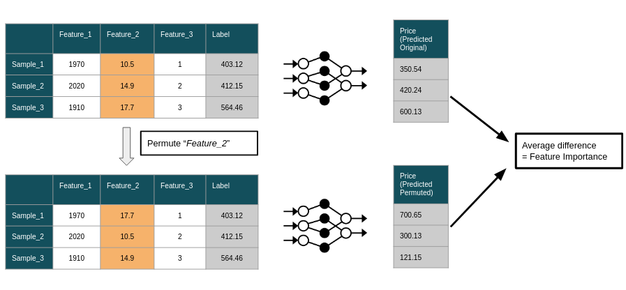이를 통해 만약 shuffle한 feature이 중요한 역할을 하고 있었다면 모델의 성능이 크게 하락할 것이고, 성능이 변하지 않았다면 해당 feature은 애초에 별로 영향력이 없었다는 것을 의미한다를 보여주는 알고리즘이다.