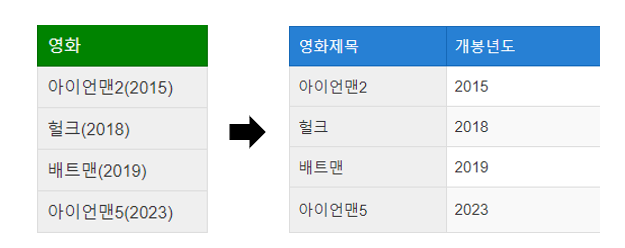 이름과 같은 짧은 단위의 문자를 분할하거나, 의미 있는 정보 등을 추출하여 분할.