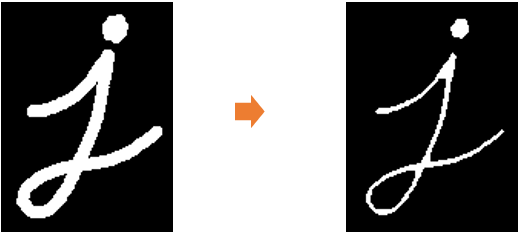 Erosion은 물체의 경계를 침식하는 작업으로, 이미지의 특징을 축소할 때 사용 한다.