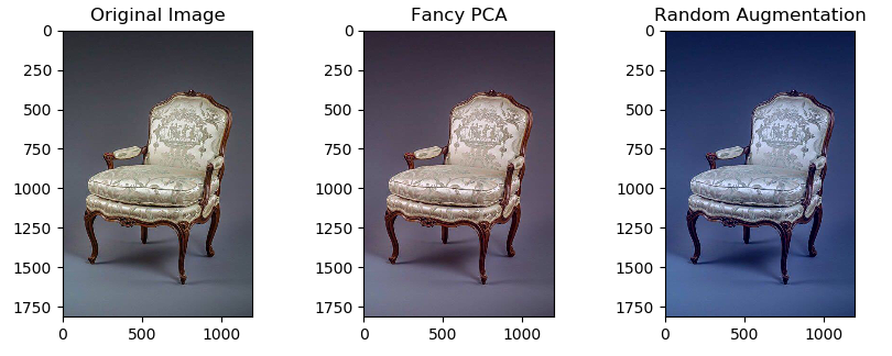 다음으로는 image의 RGB값에 PCA를 적용하여 각 색상에 대한 eigenvalue를 찾아서 해당 eigenvalue와 평균이 0이고 분산이 1인 가우시안 분포에서 추출한 랜덤한 변수를 곱하여 기존 RGB 값에 더해준다.
