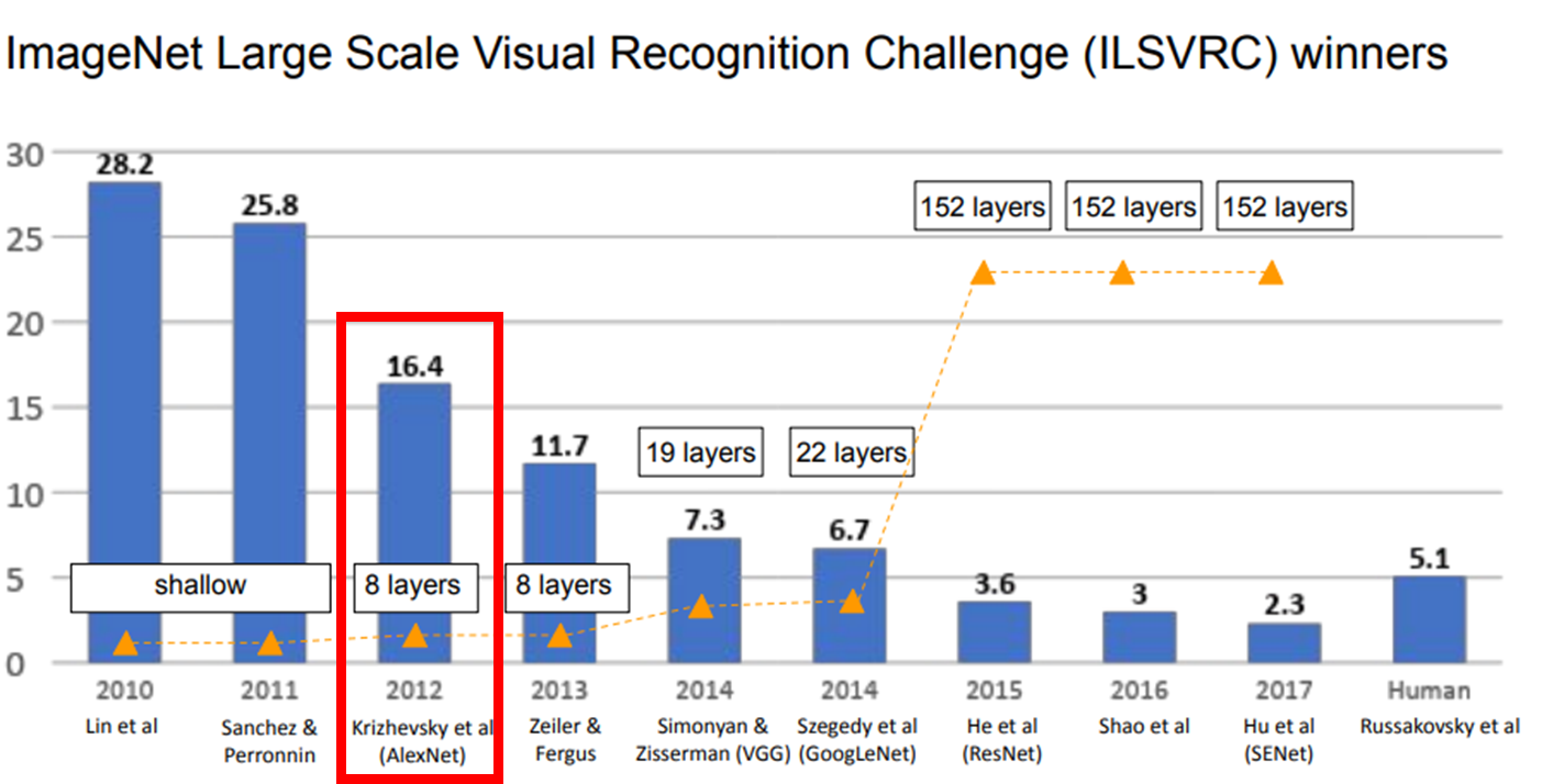 안녕하세요~ 이제부터는 CNN이 발전해왔던 과정을 여러 모델을 통해 알려드릴까해요. 그래서 이번장에서는 그 첫 번째 모델이라 할 수 있는 AlexNet에 대해서 소개시켜드릴려고 합니다! AlexNet의 논