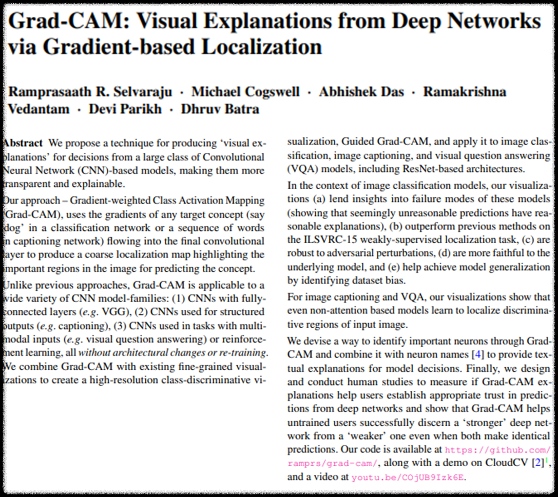 이때 기존 네트워크 구조를 그대로 유지하면서 CAM과 유사하게 특징맵을 시각화할 수 있는 Grad-CAM이 2017년도에 등장하였다.