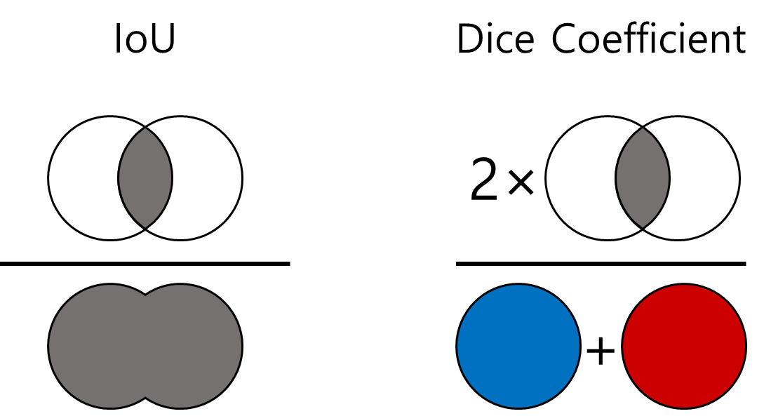 IoU와 유사하지만, 두 영역(합집합, 교집합)의 조화평균을 사용하여 계산하는 방법