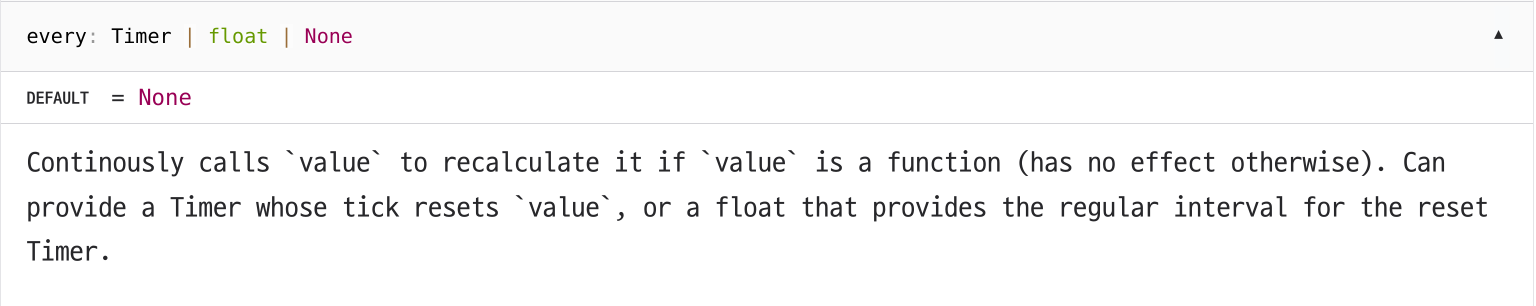 그런데 그냥 cli에서 처럼 로그가 계속해서 쌓이는데 내가 버튼을 눌러야한다는 것이 매우 불편했고, 자동으로 새로고침이 되었으면 좋겠다는 생각을 하여 docs를 찾아보니 여러 component 들에 `every`라는 파라미터가 있었다.