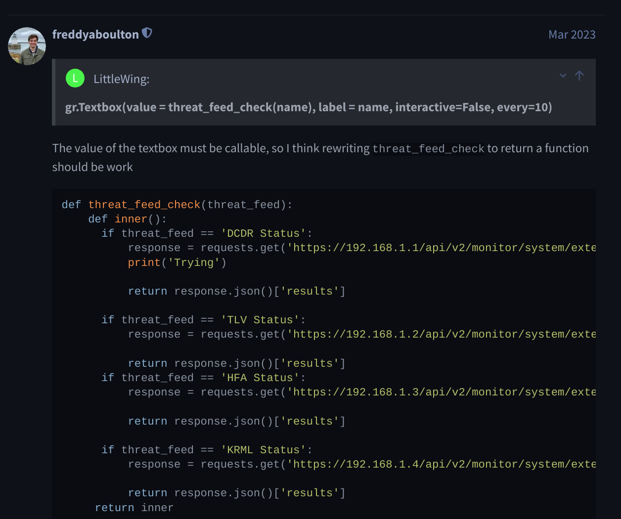 Is it running approximately every 10 seconds or it’s not running repeatedly at all? What version of gradio are you using?