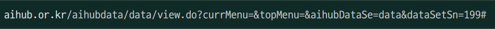 이 때 `datasetkey`는 `grep 명령어`으로 검색했을 때 나오는 숫자, 혹은 AIHub의 해당 데이터셋 페이지 주소창의 맨 뒤 숫자
