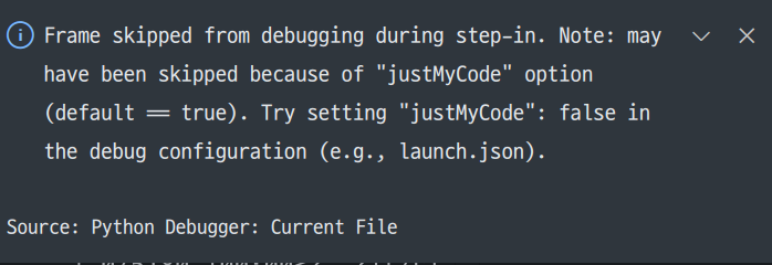 vscode에서 디버깅을 할 때, 자신이 작성한 코드가 아닌 라이브러리에 있는 코드들도 디버깅을 해야 할 때가 있다.